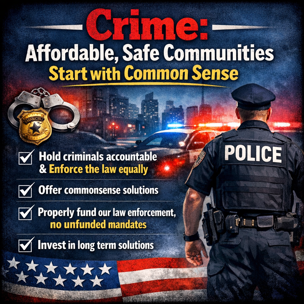 Our communities’ safety is at serious risk, burdened by rising crime that drains resources and hits families’ pocketbooks hard. As trusted representatives, we must act decisively to rein in violence and put in place safeguards that incentivize local solutions and real accountability—such as funding community-based prevention programs that work hand-in-hand with stronger enforcement.
