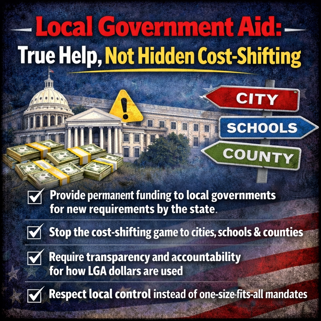 Local Government Aid (LGA) was designed to keep property taxes affordable and support essential city services like roads, police, and fire protection. But under current leadership in St. Paul, it’s too often used to mask the state’s failure to fund its own mandates, leaving local homeowners to foot the bill through higher property taxes.